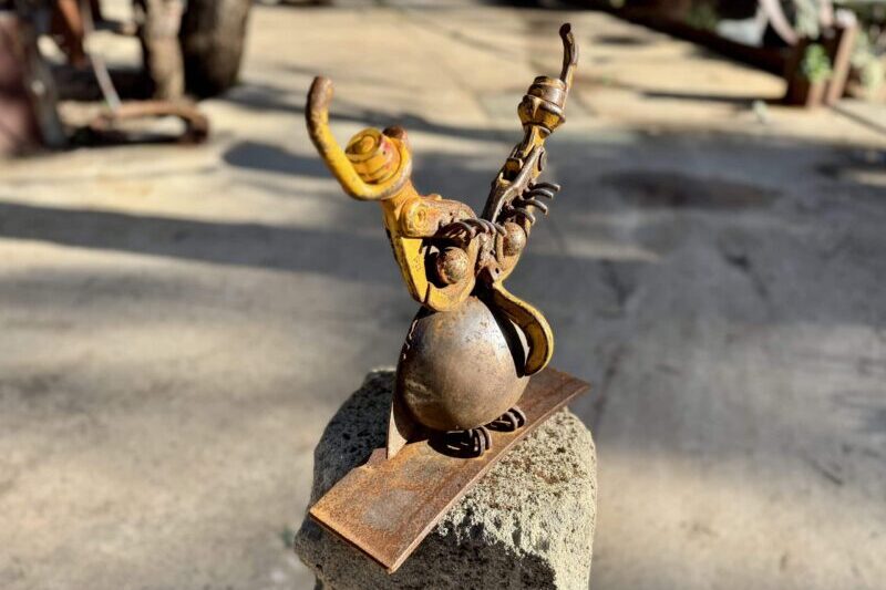 A small owl with a big personality — and an even bigger belly. Sculpted from reclaimed steel with stories in every surface, he perches patiently, ready to watch over garden paths and late-night cups of tea. Proof that wisdom comes in all shapes, especially round ones.