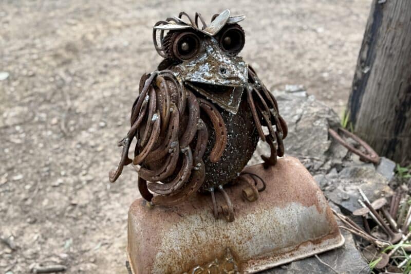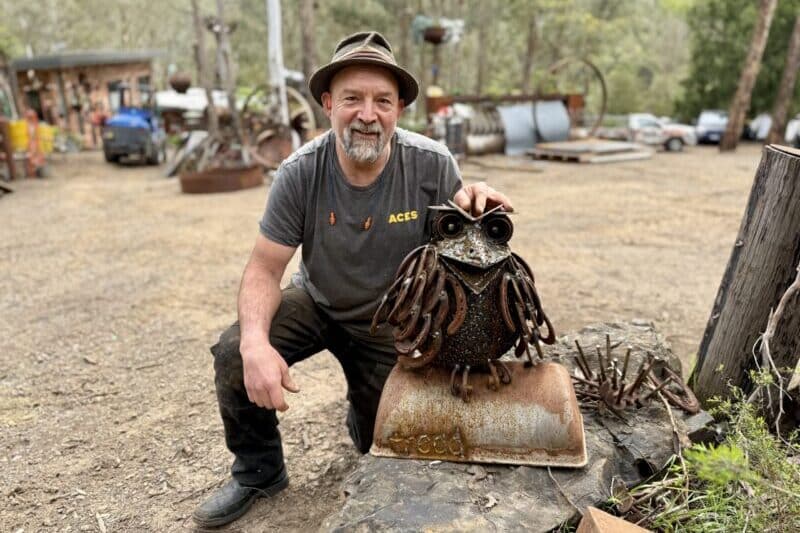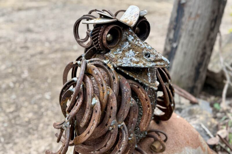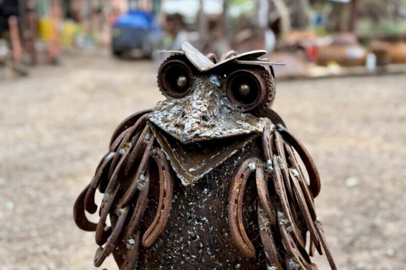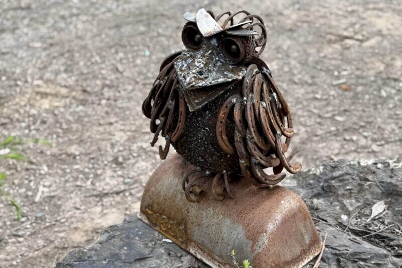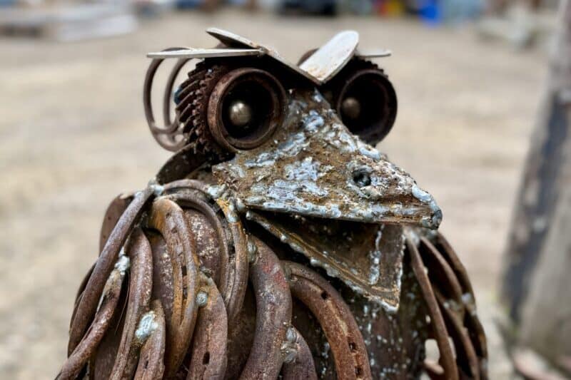 A reclaimed-steel tribute to the Tawny Frogmouth — Australia’s Bird of the Year 2025.
