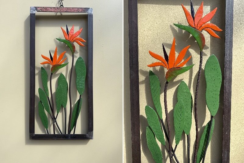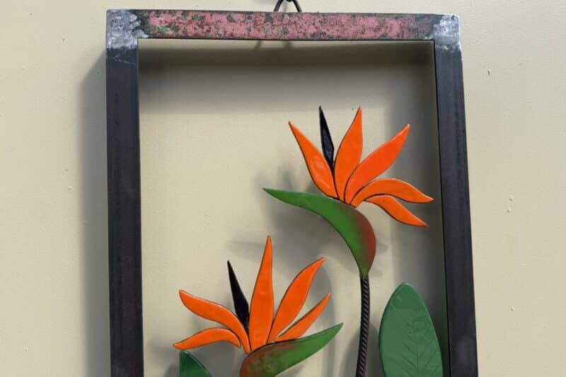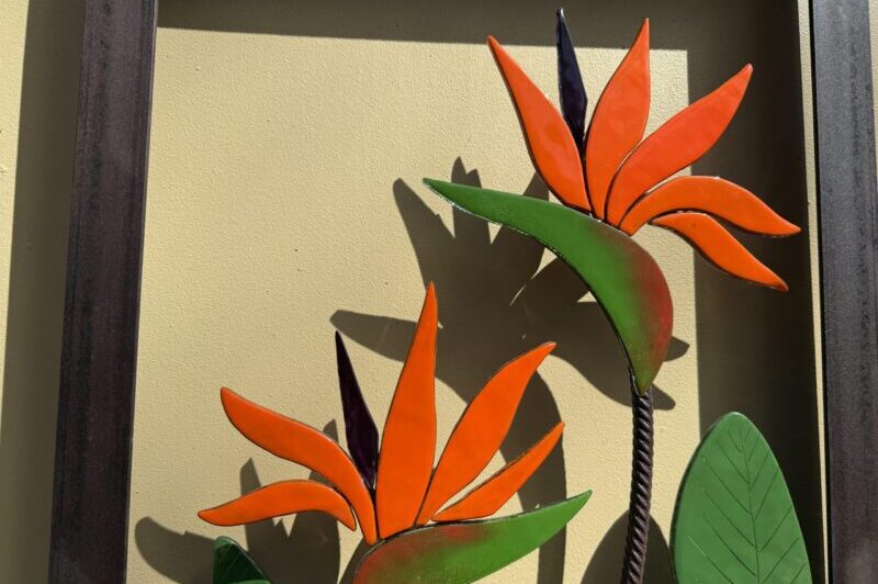 Paradise Bloom brings the bold beauty of the Bird of Paradise flower to life, blending steel and hand-glazed glass. Inspired by nature’s vibrant colors and graceful shapes, this piece transforms industrial materials into a celebration of life and beauty.