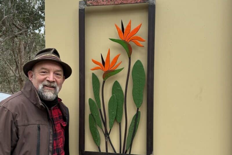 The detailing on these glass leaves and flowers beautifully compliments the rusty earthiness of the reclaimed steel frame as a true reflection of what we are surrounded by when in the Australian bush.