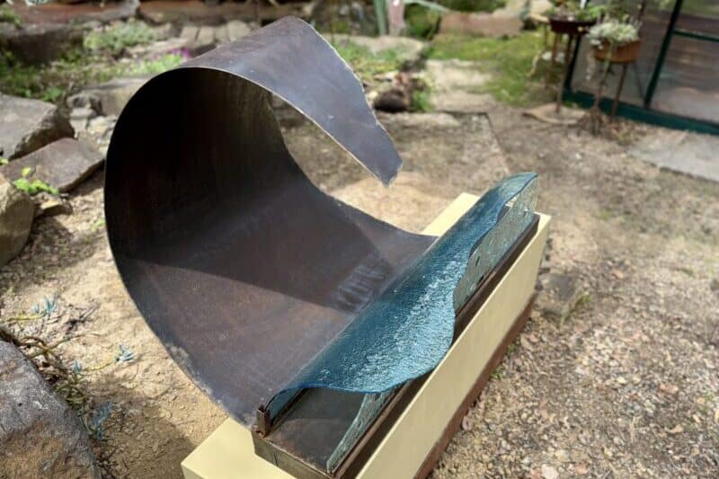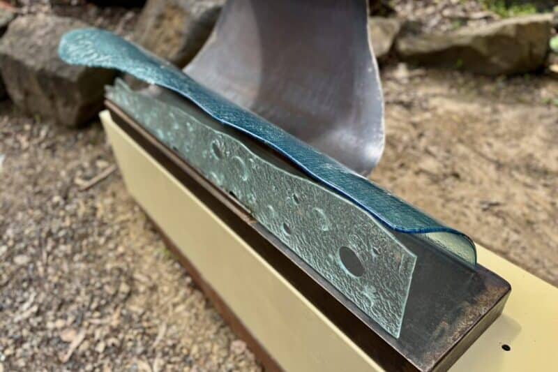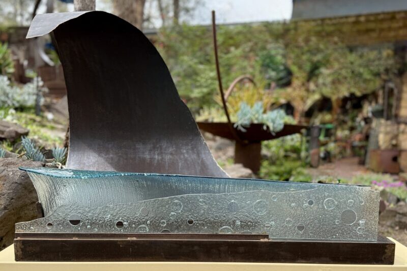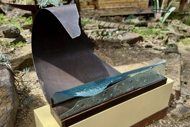 Pipeline captures that moment just before the ocean folds over itself — the instant when energy becomes motion. The rolled steel and turquoise glass both start to break, forming a curling barrel, with clear glass lifting at the front like rising froth. A reminder of the ocean’s sheer force — how small we are beside it, and how compelling that power can be.