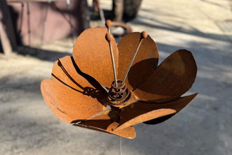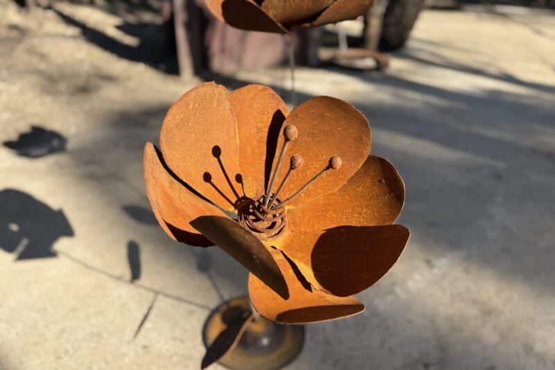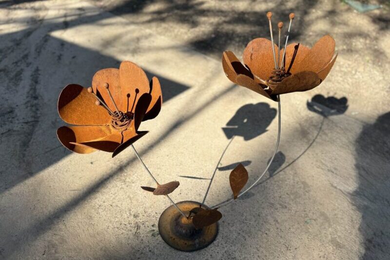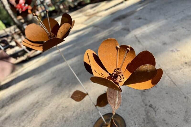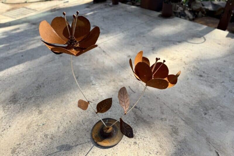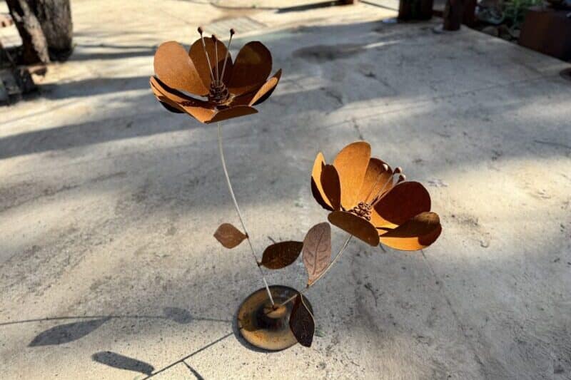 Made from reclaimed steel with hand cut petals and leaves, these flowers are perfect for a small garden space.