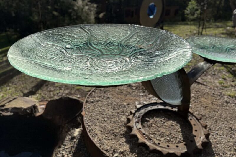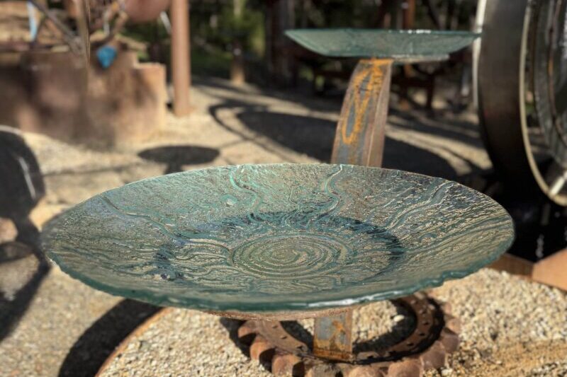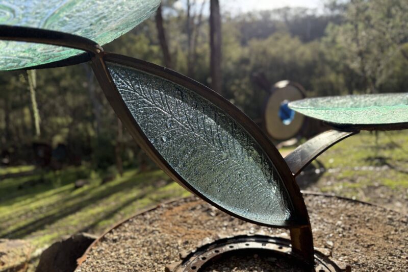 1.9m wide x 84cm high x glass slumped leaf is 77cm long and 23cm wide.
