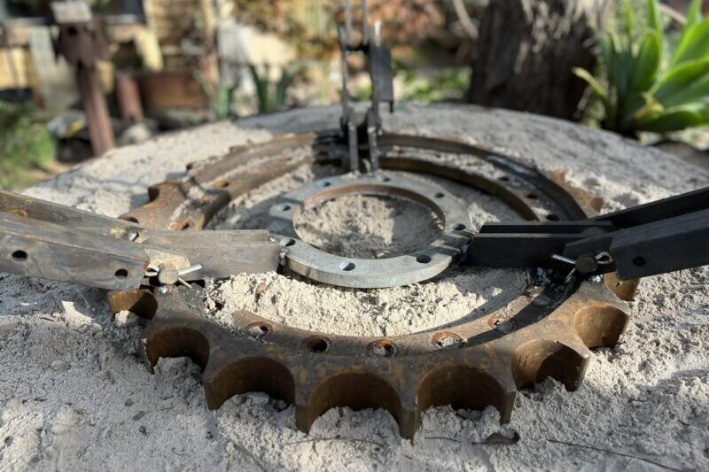 Sculpted with no drawings or fixed plan and named Synchronicity due to the many different unrelated pieces of materials coming together and the flow of Fraser, Orin and myself sculpting it as a team.