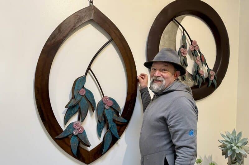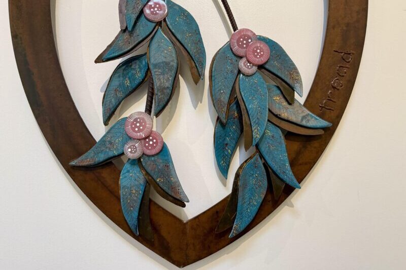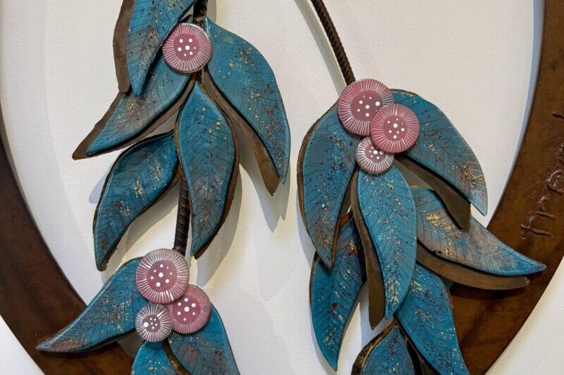 The addition of circular gum flowers from fusible glass and detailed glaze gives a glossy bit of pink that fits into the Aussie colour pallet.